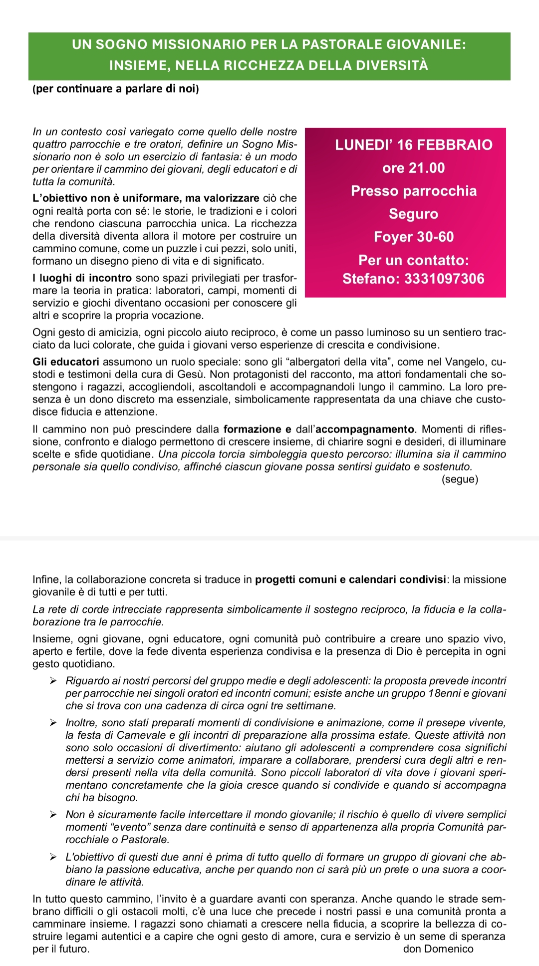 Un sogno missionario per la pastorale giovanile