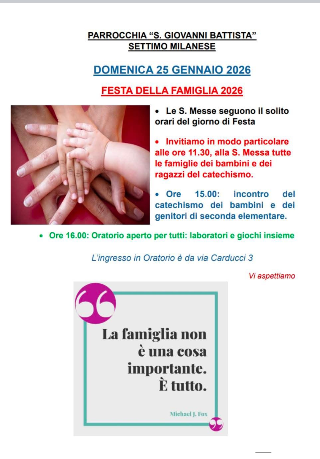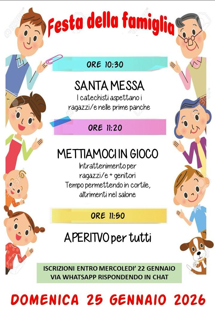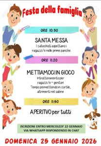 Festa della Famiglia – Domenica 25 Gennaio 2026 Posted on 17 Gennaio 2026 by Lorella Zanetti Nella Nostra Comunità Pastorale :