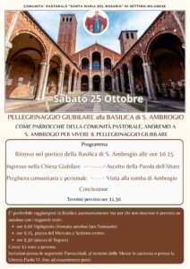 25 Ottobre Pellegrinaggio Giubilare alla Basilica di S. Ambrogio